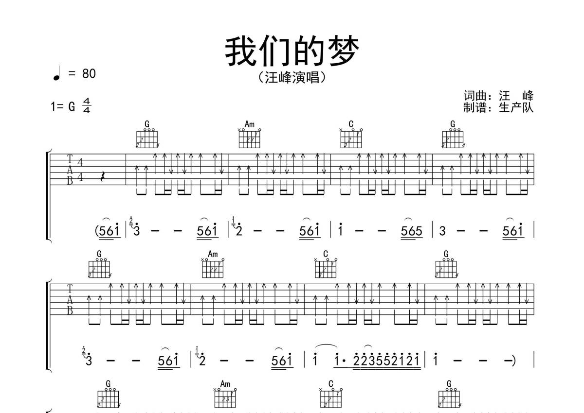汪峰《我们的梦》吉他谱 - G调弹唱六线谱