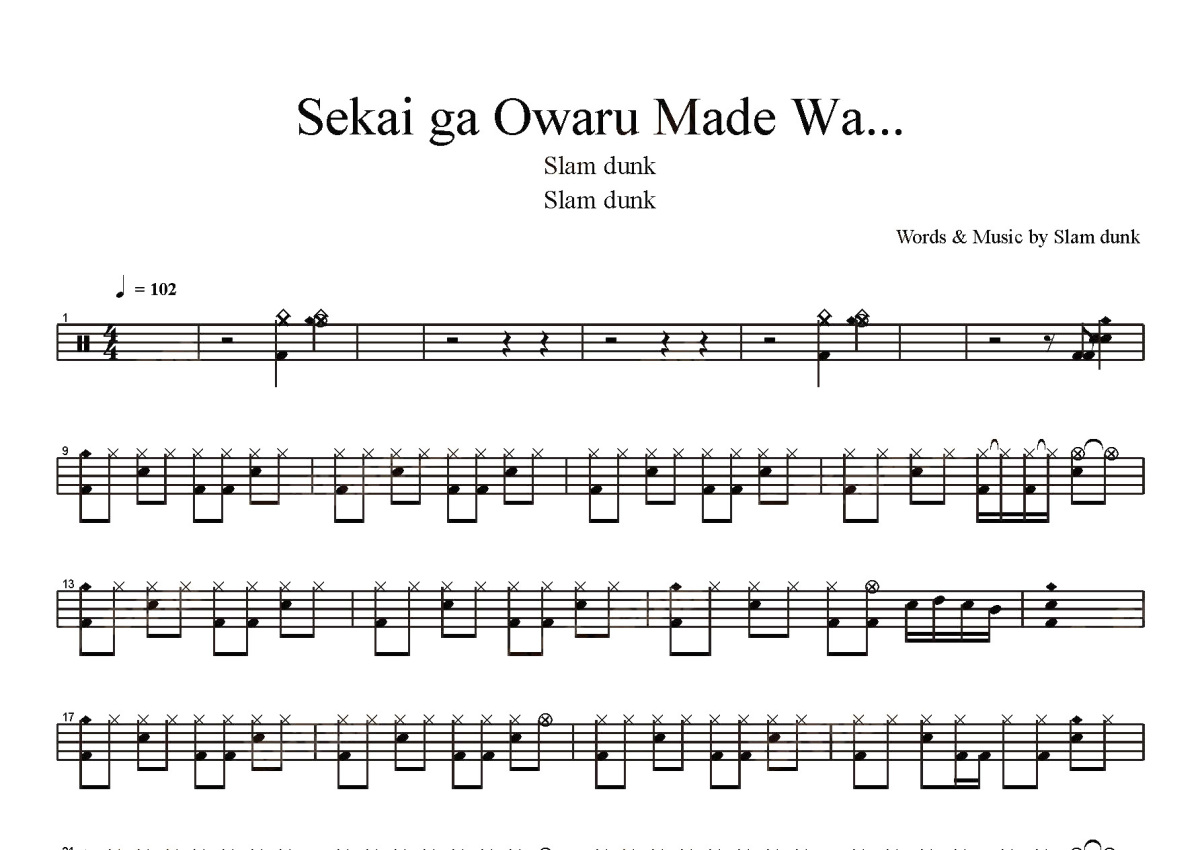 Slam Dunk《Sekai Ga Owaru Made Wa》鼓谱 - 架子鼓谱