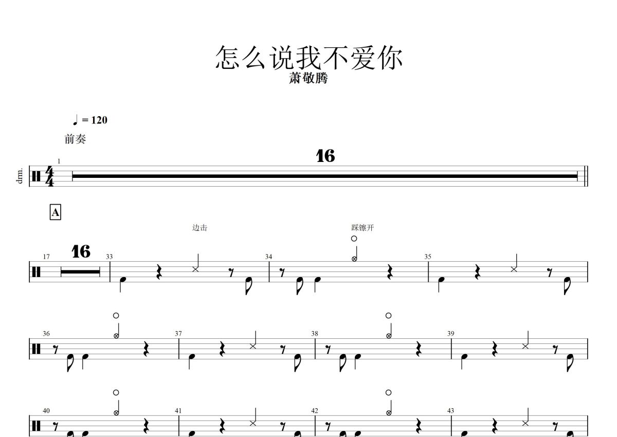 《怎么说我不爱你》是萧敬腾演唱的一首歌曲,这份鼓谱共有三张高清图谱,图谱由 @打鼓谱 编配上传,图谱使用五线谱编配,使用这份怎么说我不爱你架子鼓谱,你将能够轻松地敲打出这首萧敬腾的怎么说我不爱你,快来尝试吧。《怎么说我不爱你》萧敬腾。