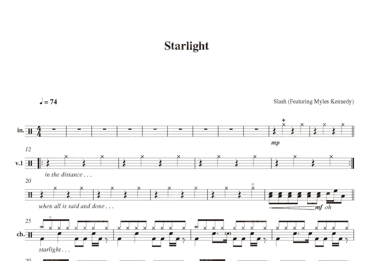 Slash《Starlight》鼓谱 - 架子鼓谱