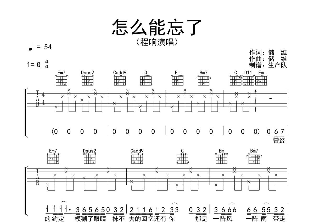 程响《怎么能忘了》吉他谱 - G调弹唱六线谱
