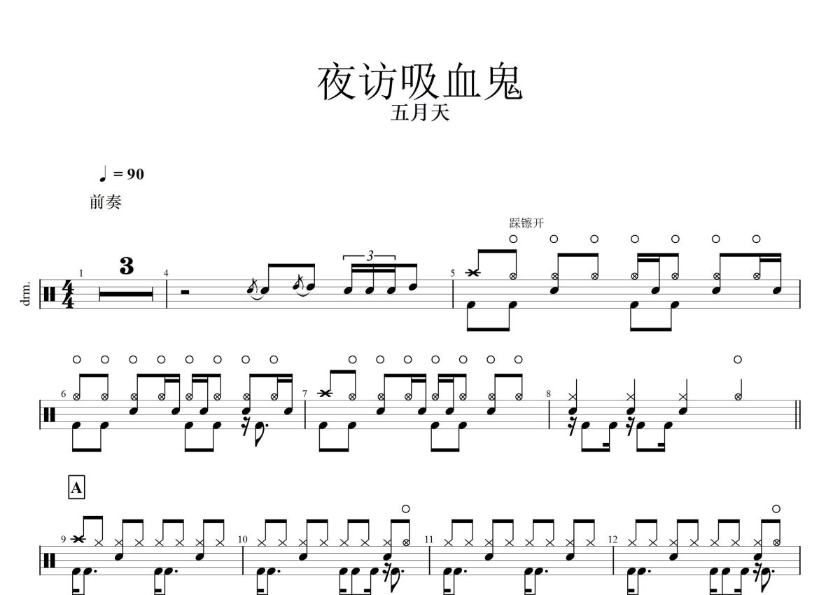 五月天《夜访吸血鬼》鼓谱 - 架子鼓谱