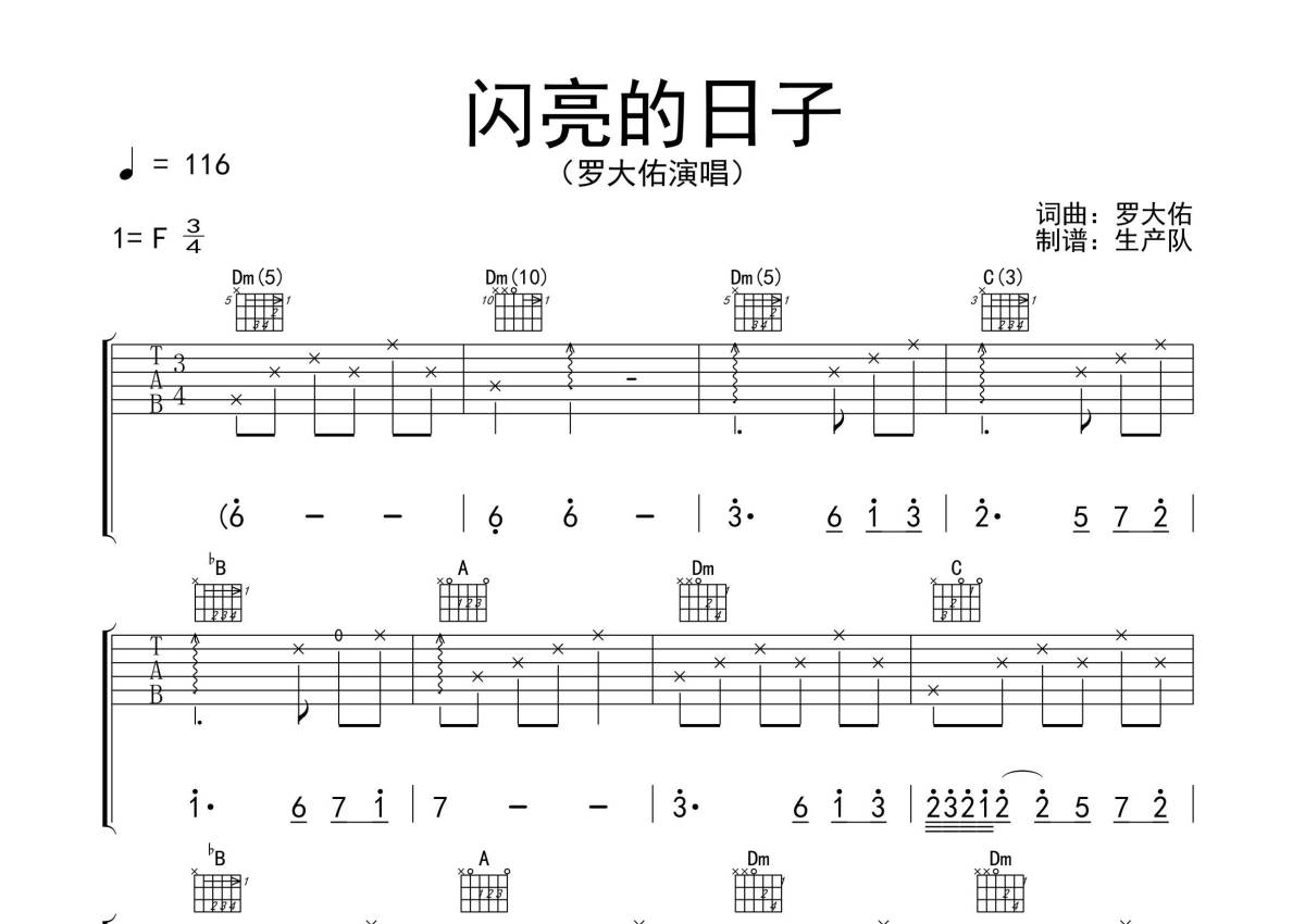 罗大佑《闪亮的日子》吉他谱 - F调弹唱六线谱