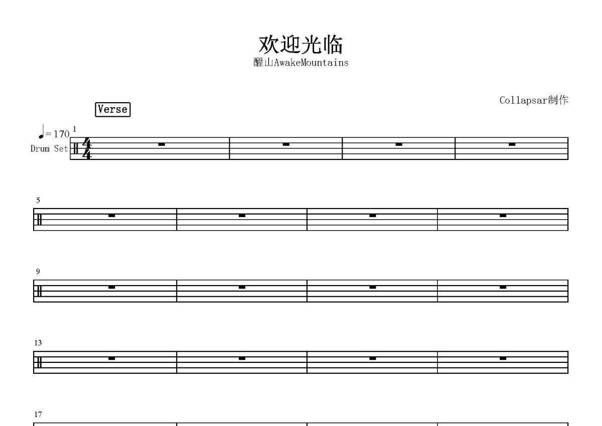 醒山AwakeMountains《欢迎光临》鼓谱 - 架子鼓谱
