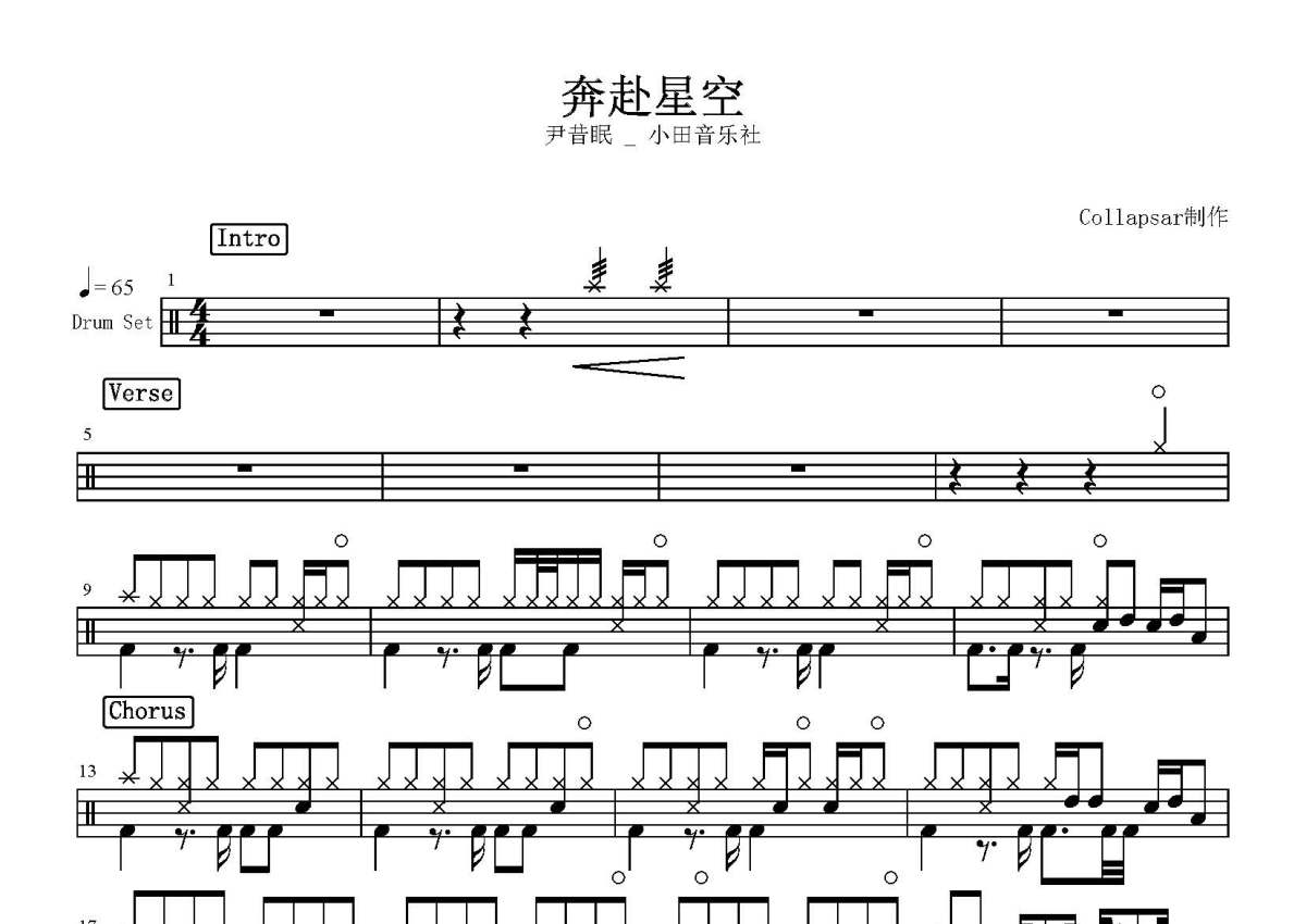 尹昔眠/小田音乐社《奔赴星空》鼓谱 - 架子鼓谱