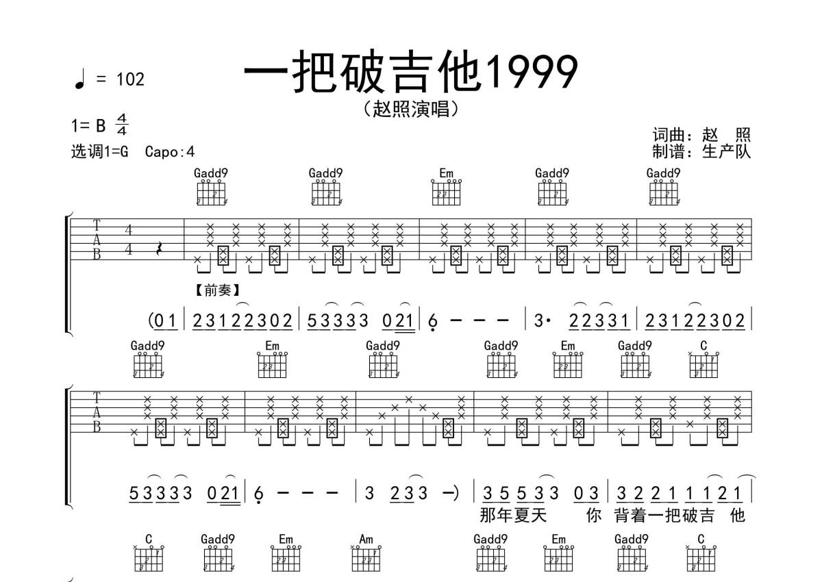 赵照《一把破吉他》吉他谱 - G调弹唱六线谱