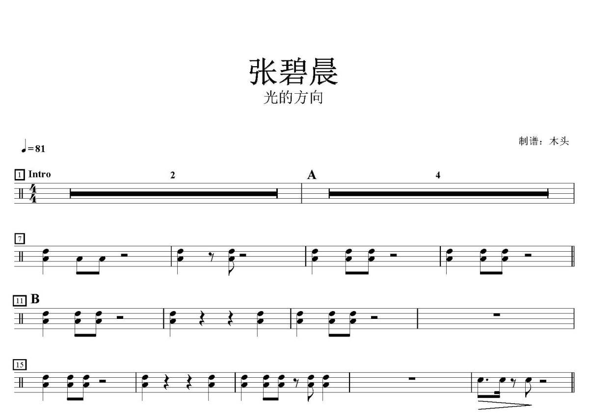 张碧晨《光的方向》鼓谱 - 架子鼓谱