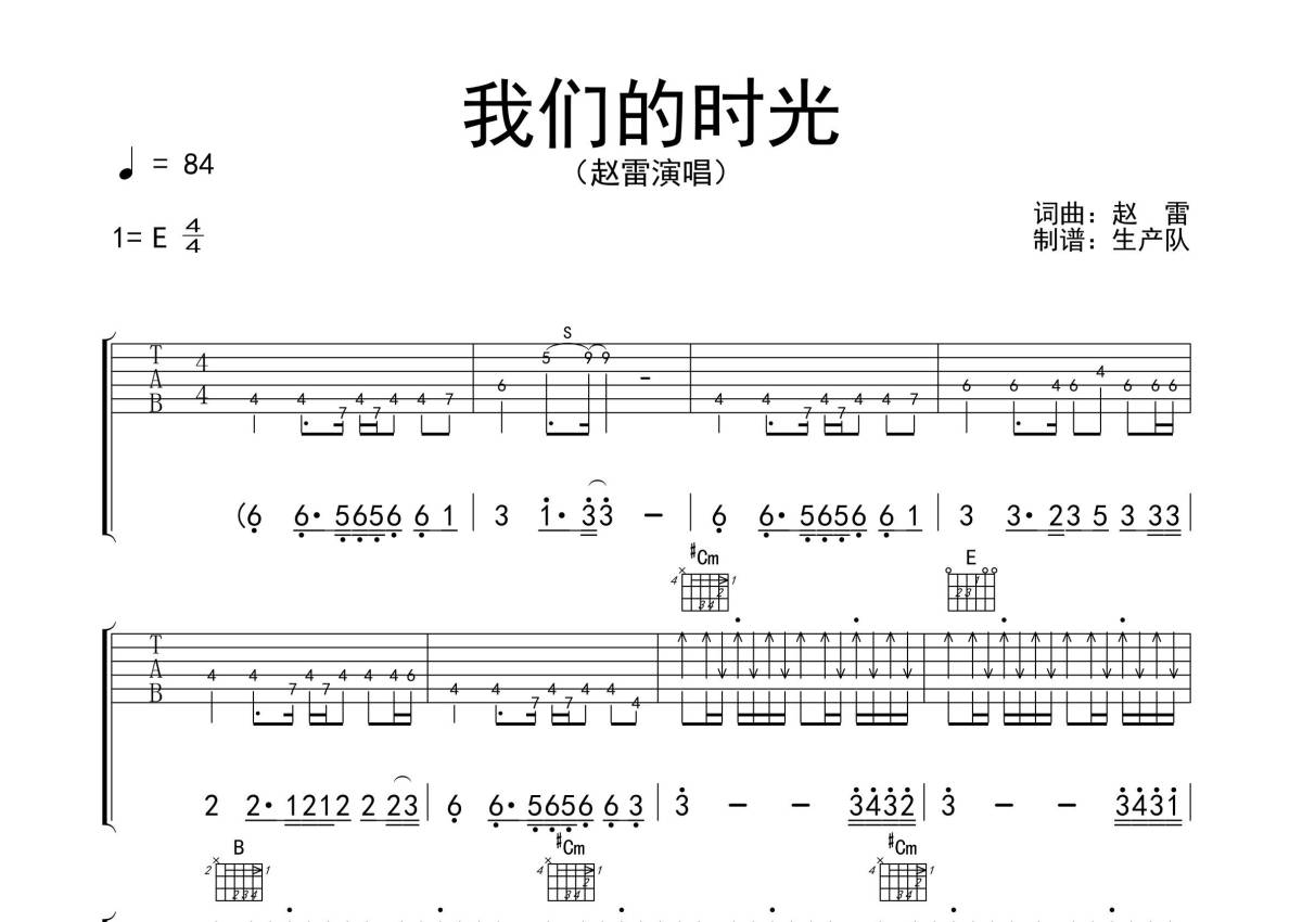 赵雷《我们的时光》吉他谱 - E调弹唱六线谱