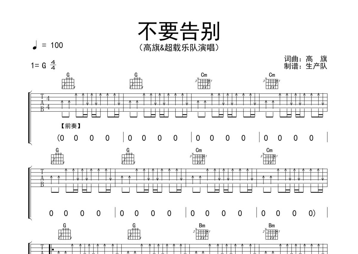 超载乐队/高旗《不要告别》吉他谱 - G调弹唱六线谱