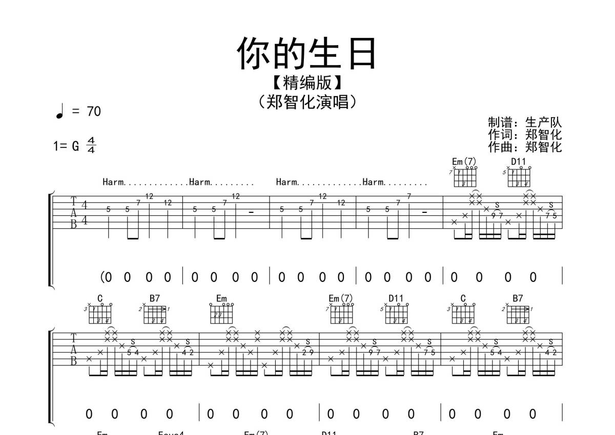 郑智化《你的生日》吉他谱 - G调弹唱六线谱