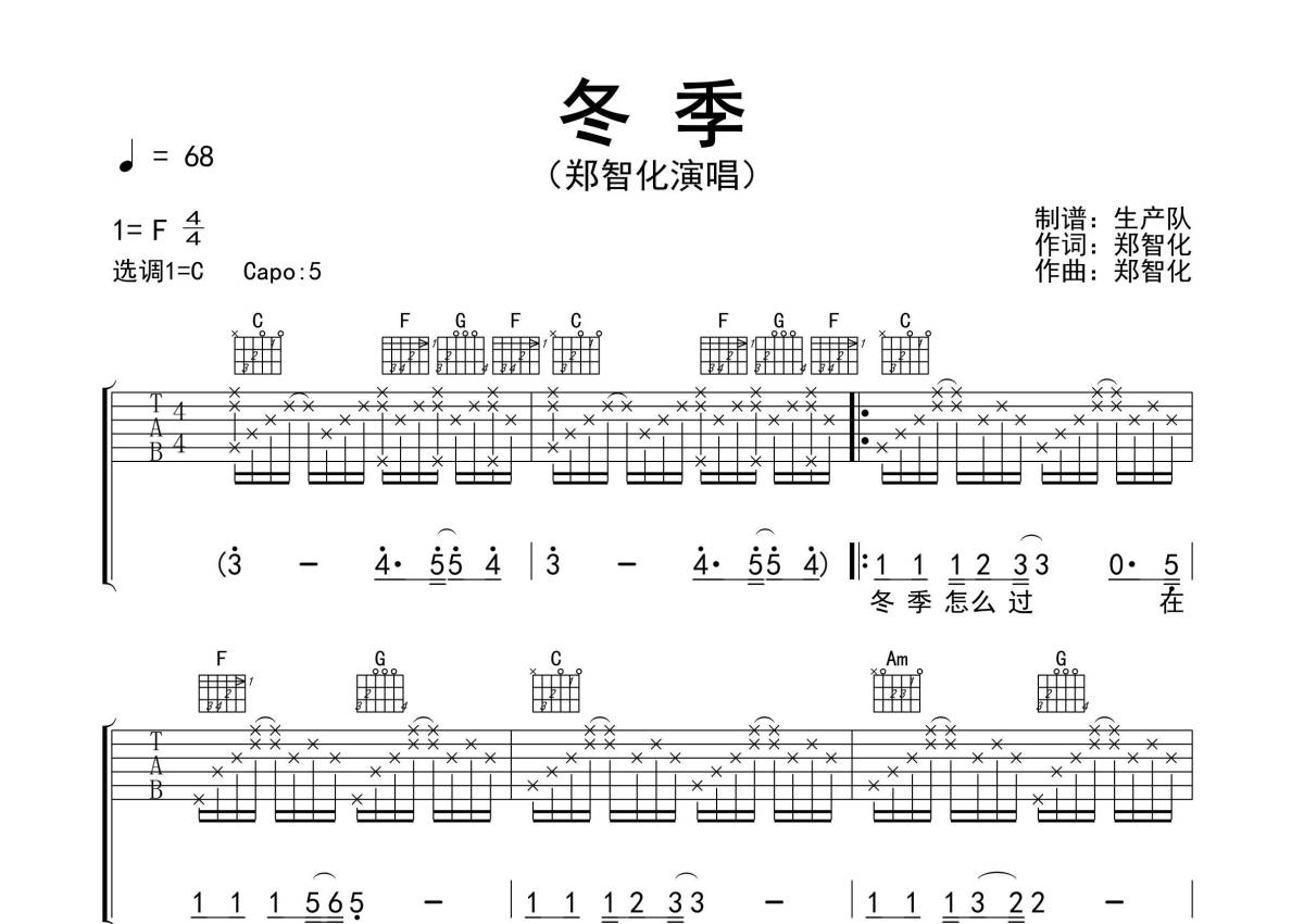 郑智化《冬季》吉他谱 - C调弹唱六线谱
