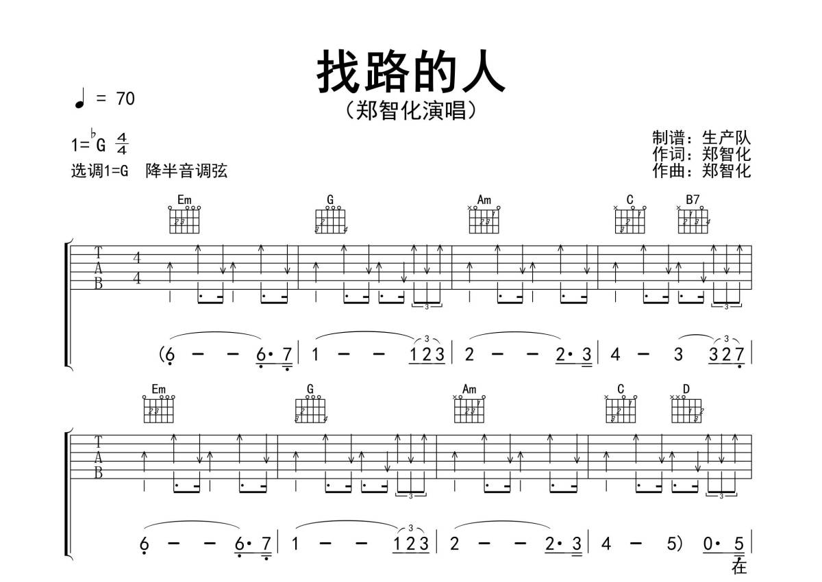 郑智化《找路的人》吉他谱 - G调弹唱六线谱
