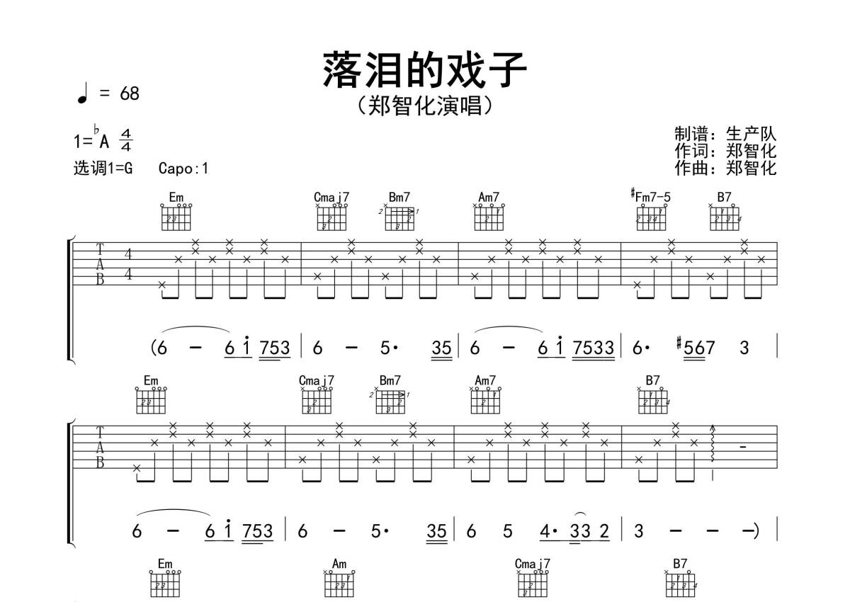 郑智化《落泪的戏子》吉他谱 - G调弹唱六线谱