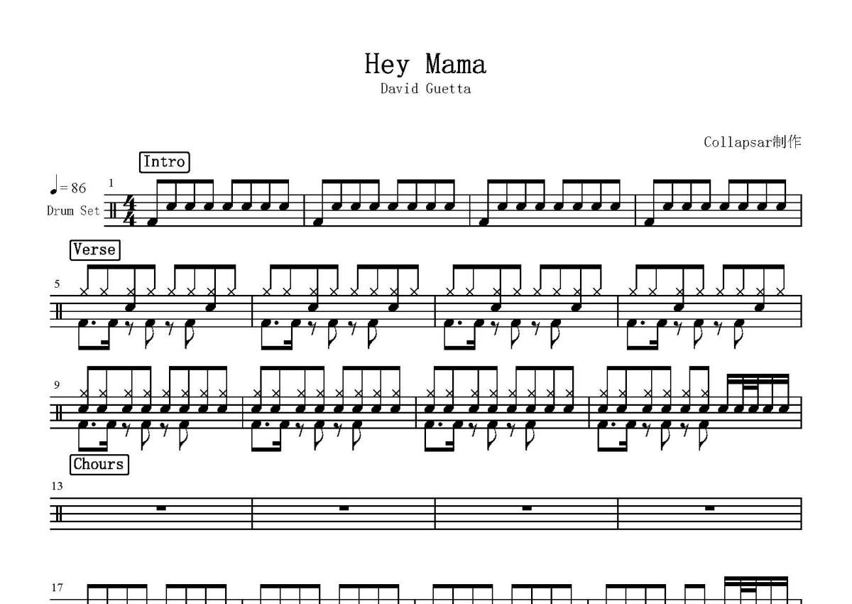David Guetta《Hey Mama》鼓谱 - 架子鼓谱