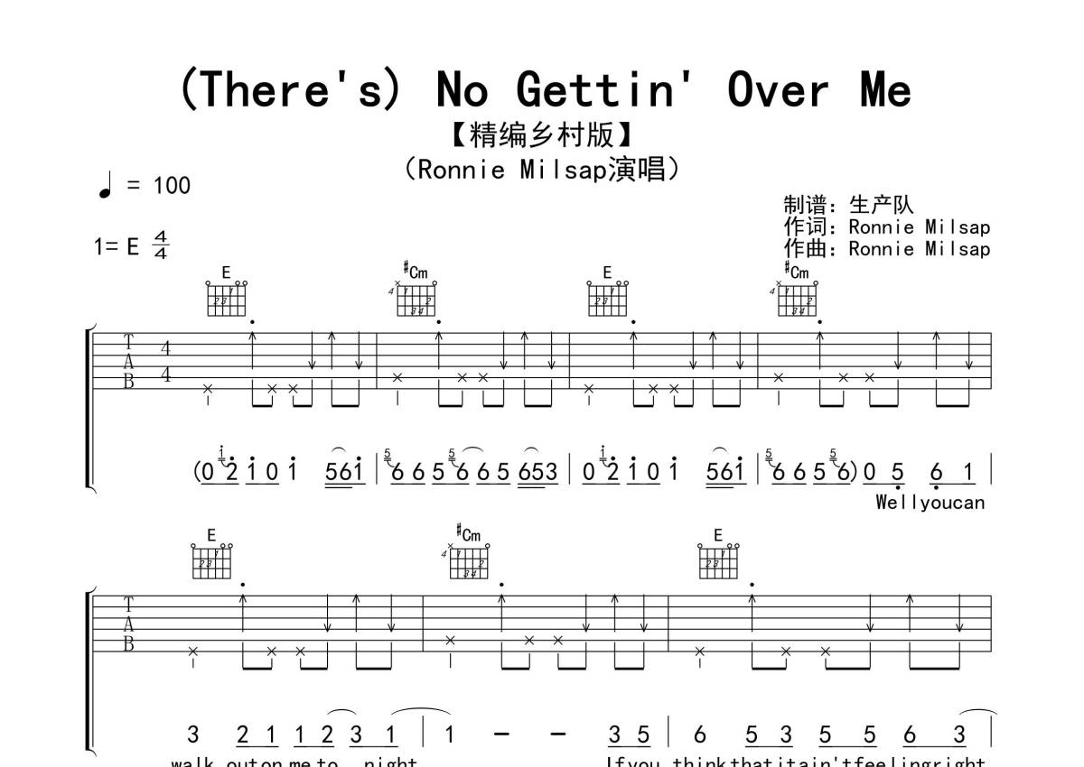 《(There's) No Gettin' Over Me》是Ronnie Milsap演唱的一首歌曲,拍号为4/4拍,歌曲速度为每分钟100拍,歌曲原调为E调,但由于原调指法比较难,为了方便弹奏,本吉他谱采用的是E调指法编配,演奏时不需要使用变调夹即为原调,这份吉他谱共有四张高清图谱,图谱由 @生产队 编配上传,图谱使用六线谱编配,包含吉他和弦指法、简谱以及歌词部分,使用这份(There's) No Gettin' Over Me吉他谱,可以让你更加方便地掌握这首歌曲的弹唱技巧,快来尝试吧。