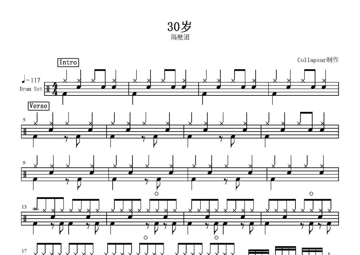 隔壁团乐队《30岁》鼓谱 - 架子鼓谱