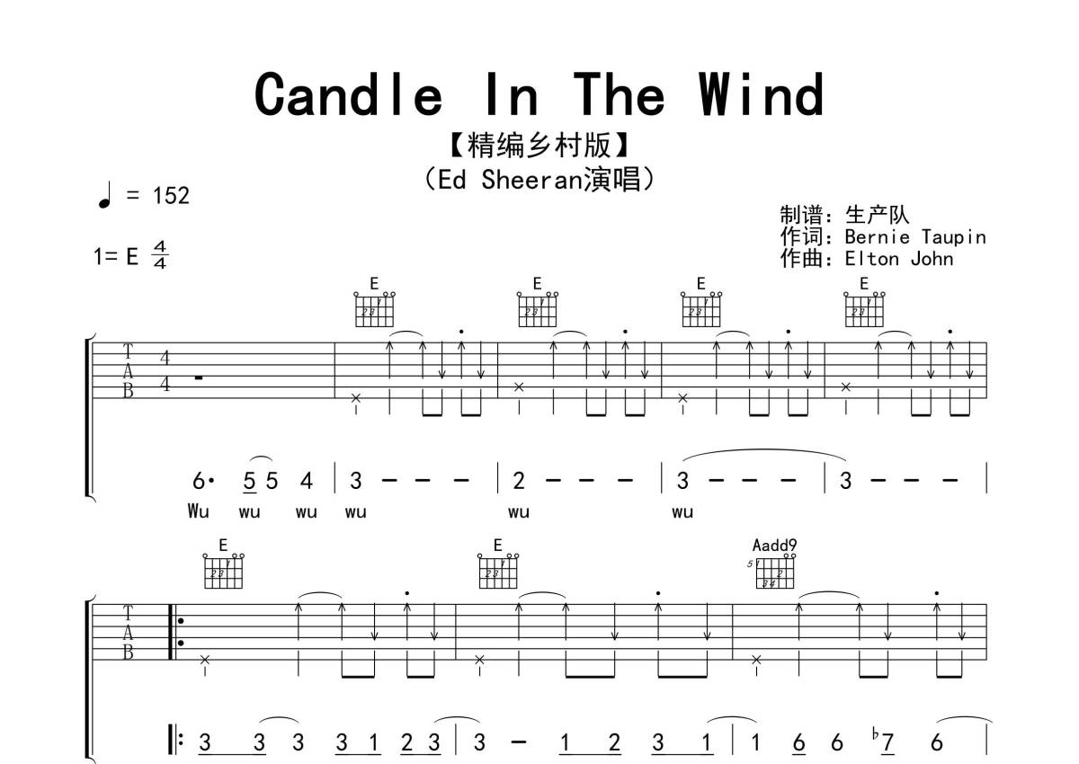 Ed Sheeran《Candle In The Wind》吉他谱 - E调弹唱六线谱