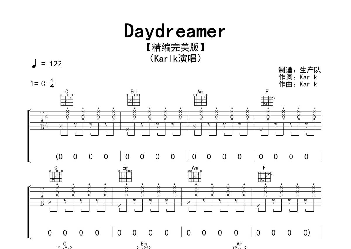 KarlK《Daydreamer》吉他谱 - C调弹唱六线谱