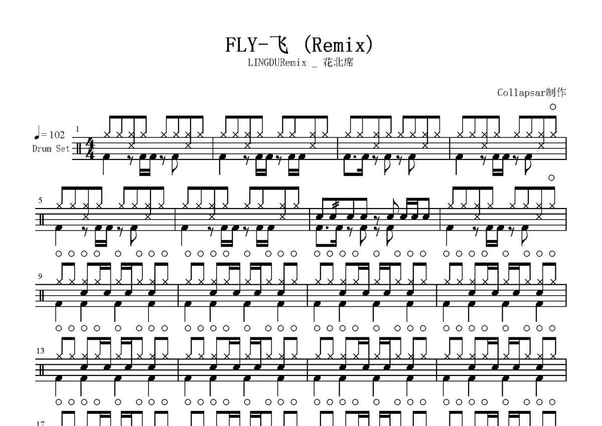 LINGDURemix _ 花北席《FLY-飞 Remix)》鼓谱 - 架子鼓谱
