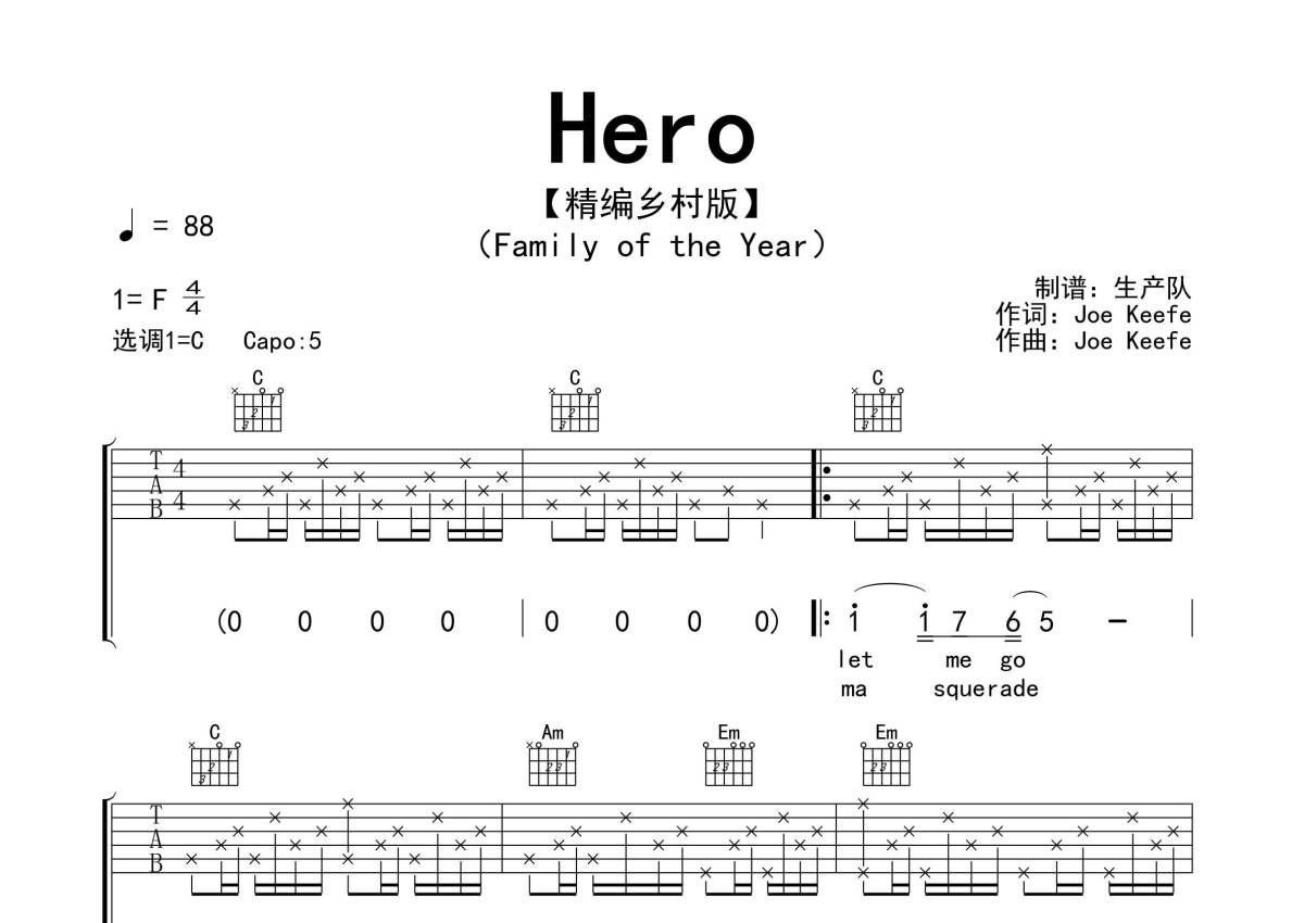 Family Of The Year《Hero》吉他谱 - C调弹唱六线谱