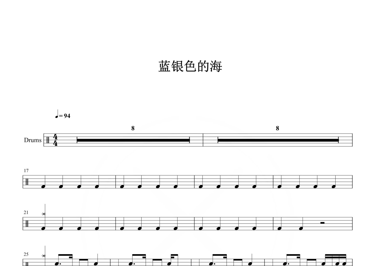 《蓝银色的海》是张碧晨演唱的一首歌曲,这份鼓谱共有两张高清图谱,图谱由 @打鼓谱 编配上传,图谱使用五线谱编配,使用这份蓝银色的海架子鼓谱,你将能够轻松地敲打出这首张碧晨的蓝银色的海,快来尝试吧。《蓝银色的海》张碧晨。