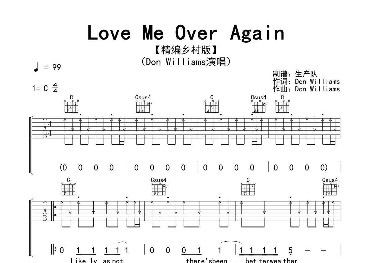 Done Again《Love Me Over Again》吉他谱 - C调弹唱六线谱