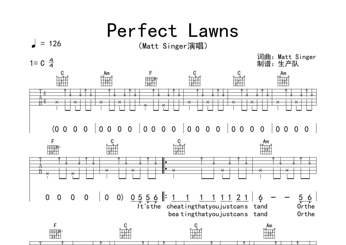 Matt Singer《Perfect Lawns》吉他谱 - C调弹唱六线谱