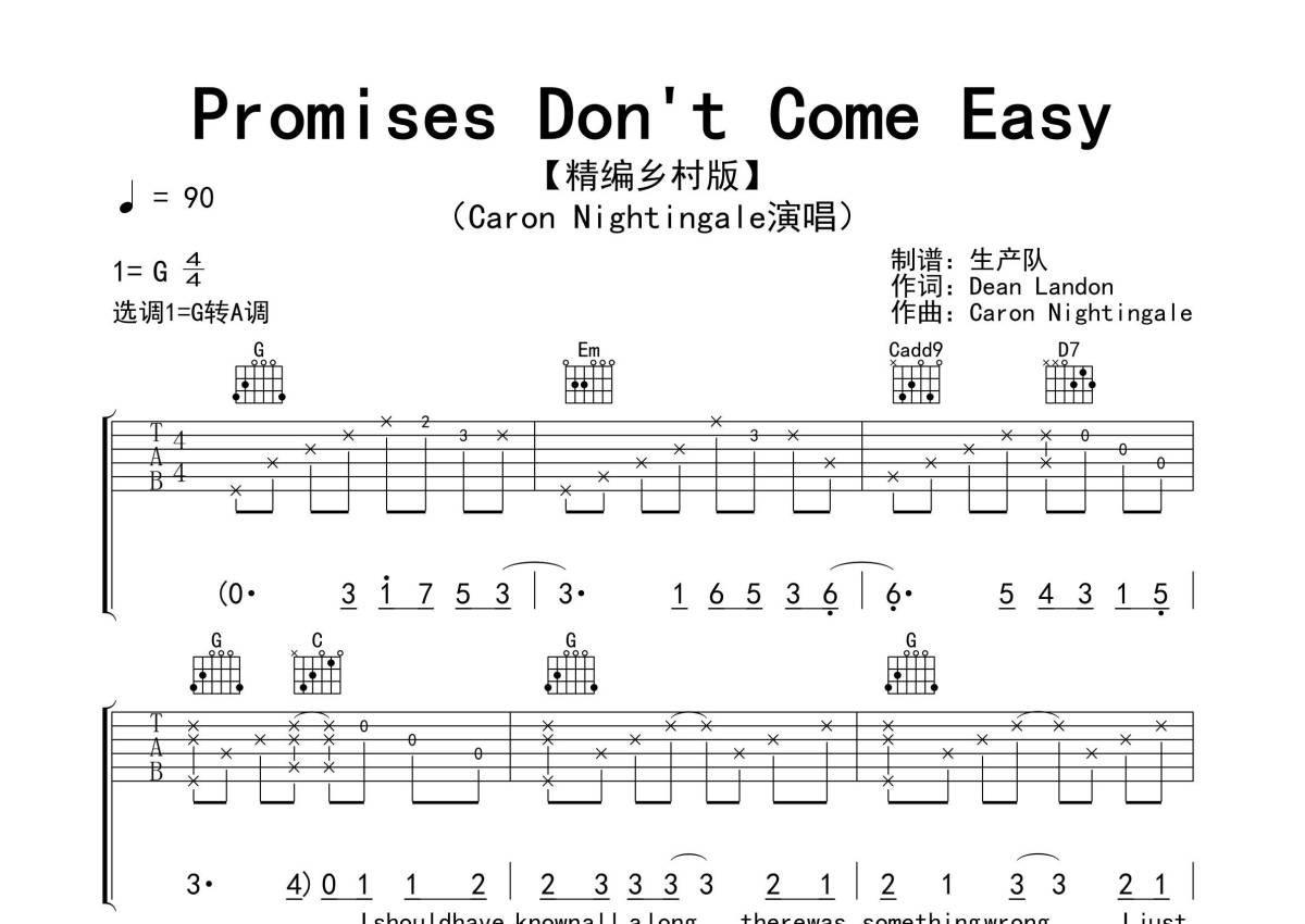 Caron Nightingale《Promise Don't Come Easy》吉他谱 - 弹唱六线谱
