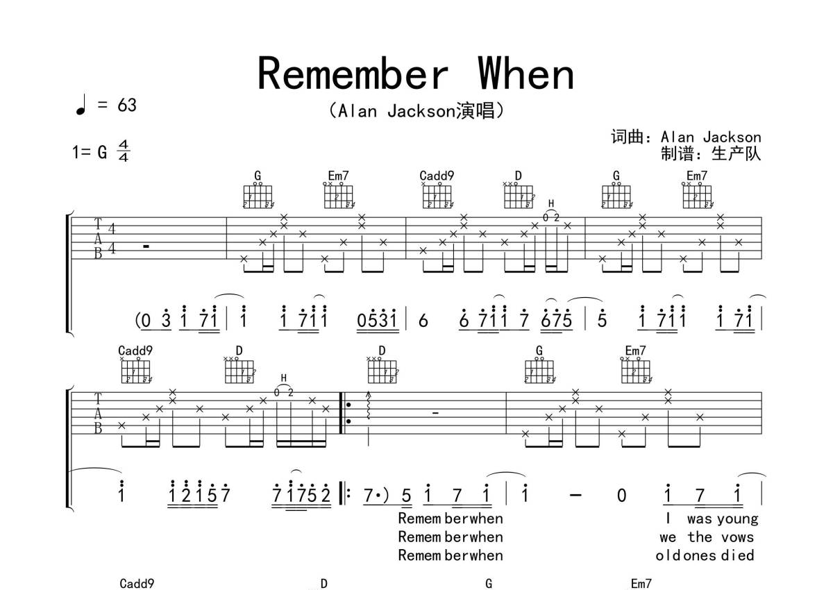 Alan Jackson《Remember When》吉他谱 - G调弹唱六线谱