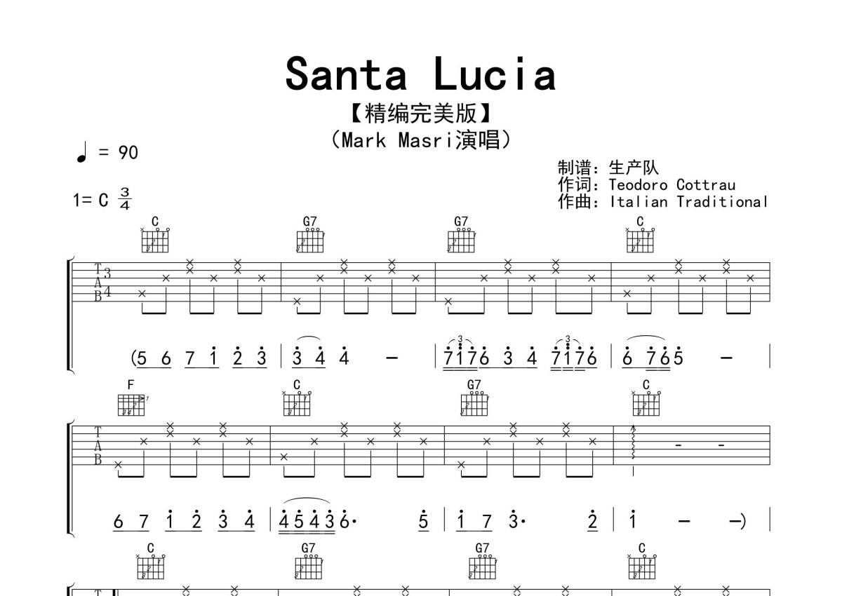 Mark Masri《Santa Lucia》吉他谱 - C调弹唱六线谱