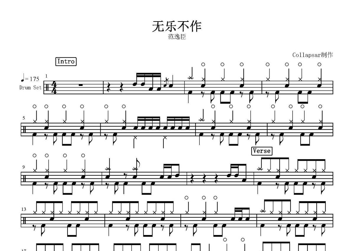 范逸臣《无乐不作》鼓谱 - 架子鼓谱