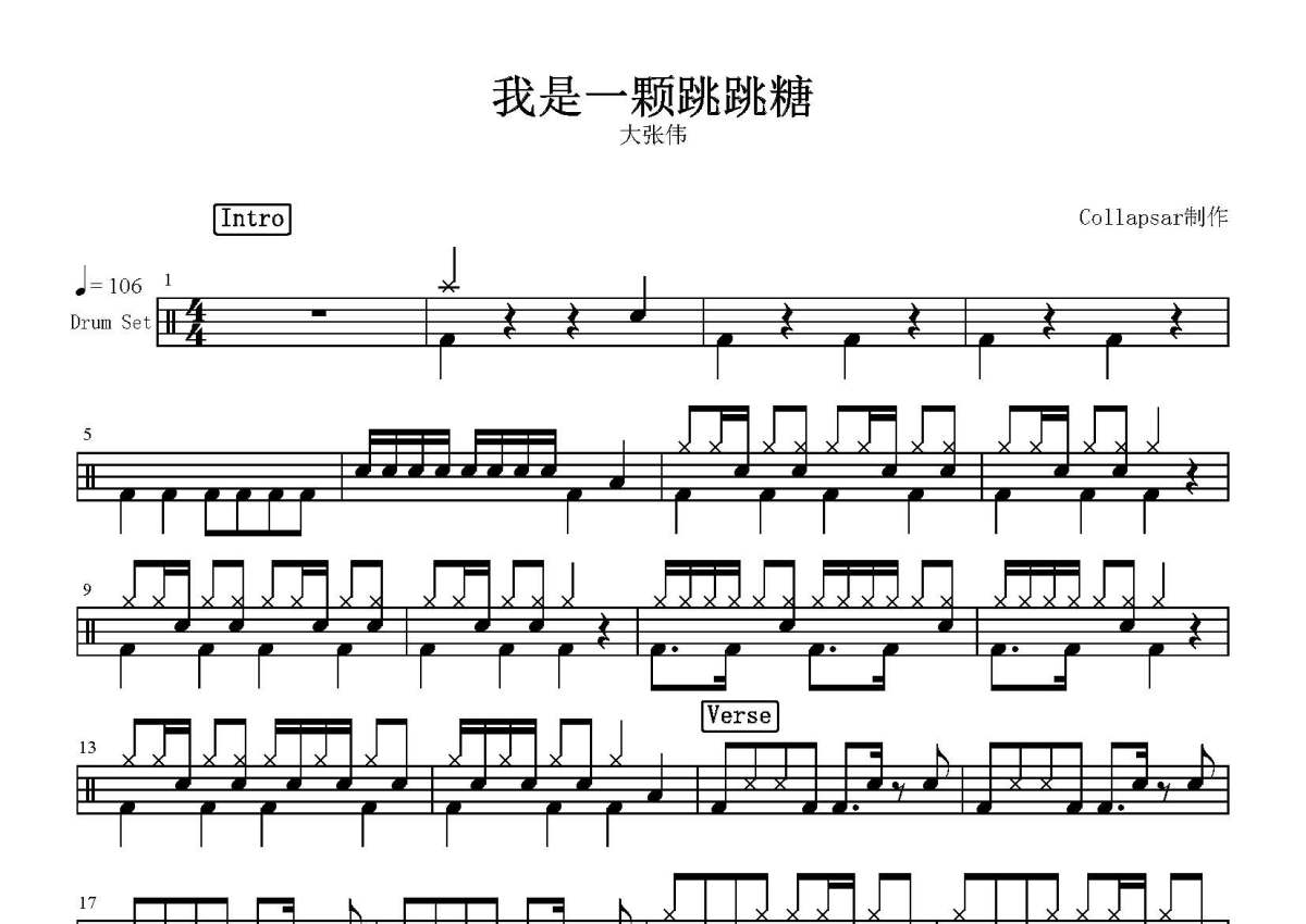 大张伟《我是一颗跳跳糖》鼓谱 - 架子鼓谱