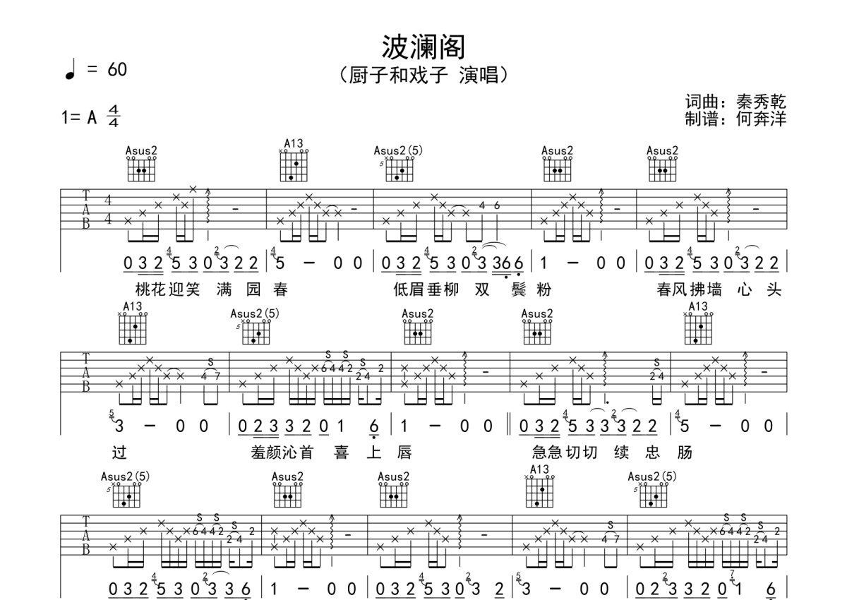 厨子和戏子《波澜阁》吉他谱 - A调弹唱六线谱
