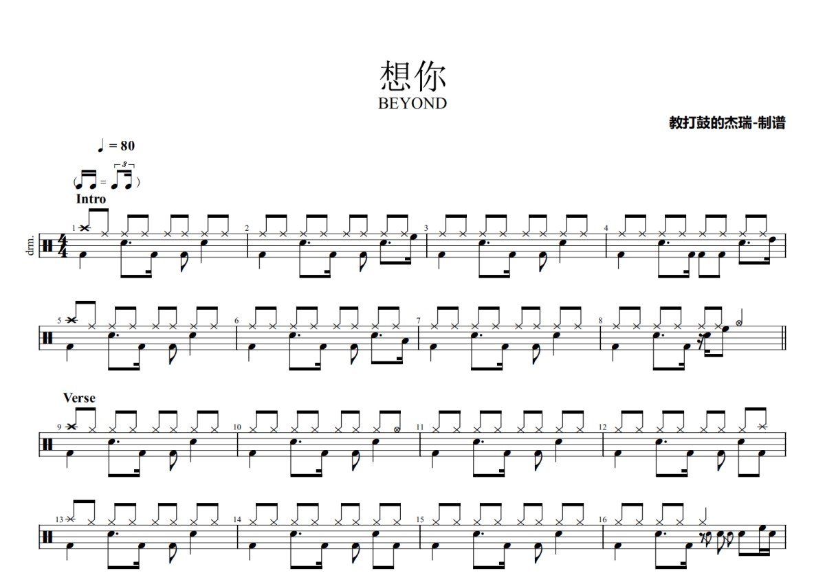 BEYOND《想你》鼓谱 - 架子鼓谱