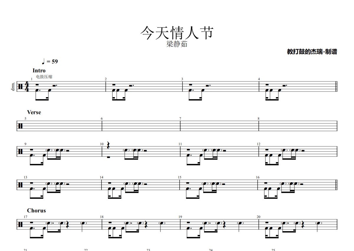 梁静茹《今天情人节》鼓谱 - 架子鼓谱