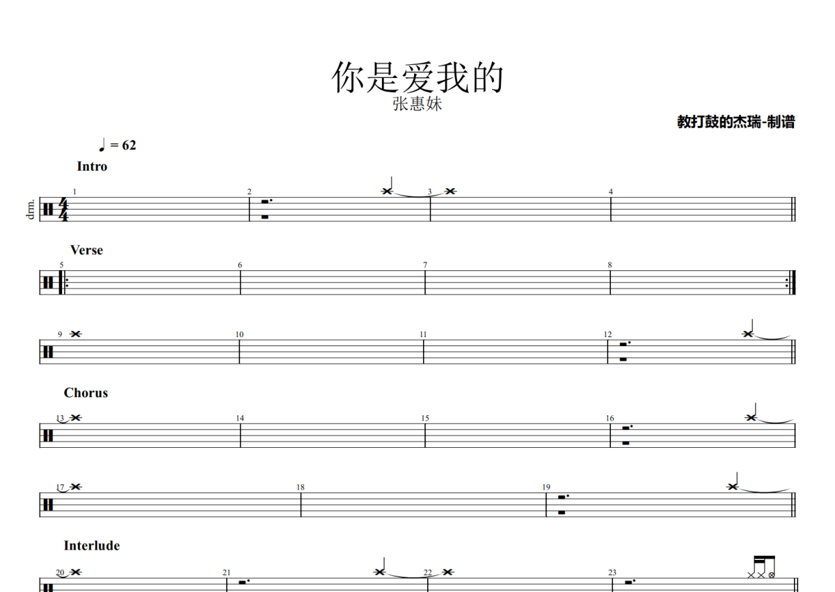 张惠妹《你是爱我的》鼓谱 - 架子鼓谱