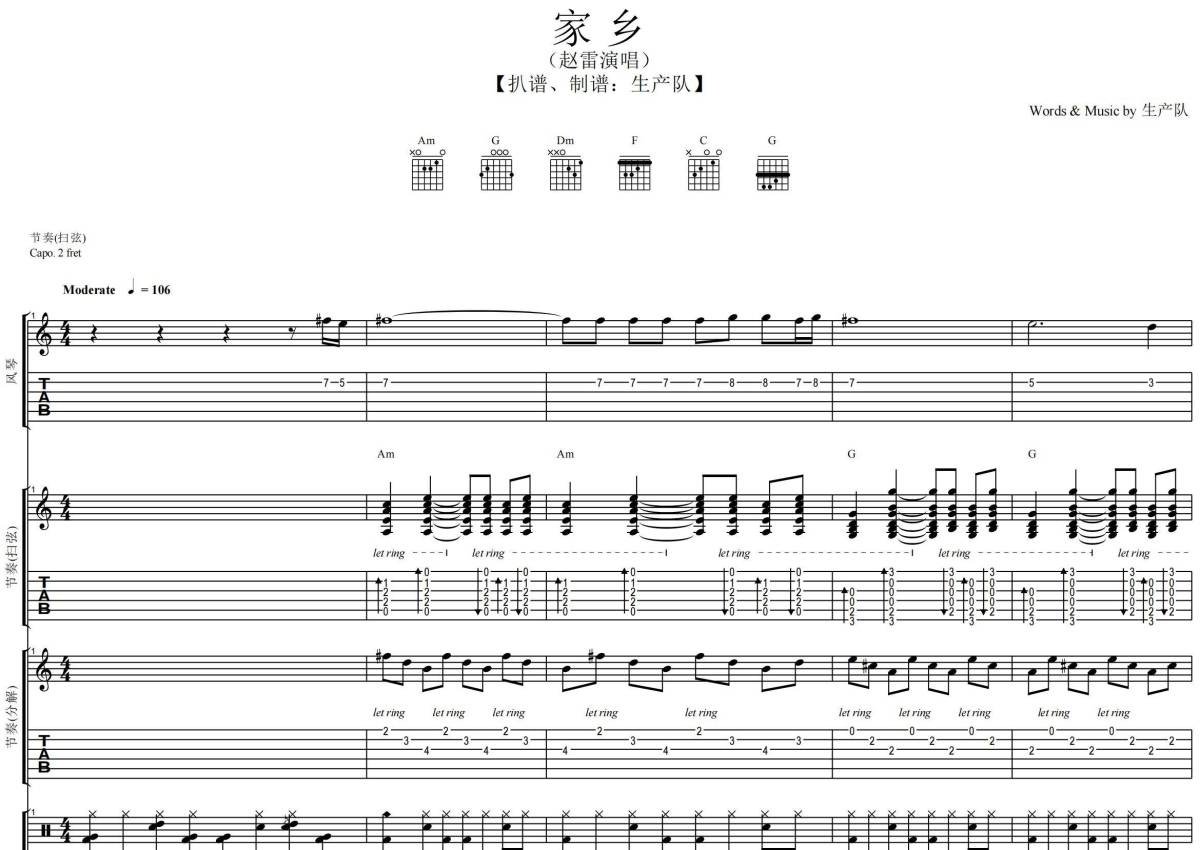 《家乡》是赵雷演唱的一首歌曲,原版编配,拍号为4/4拍,歌曲速度为每分钟120拍,这份乐队总谱共有一张高清图谱,图谱由 @生产队 编配上传赵雷-家乡(乐队总谱)根据原版D调指法编配,总谱共有7轨:风琴,吉他(分解),吉他(扫弦),华彩(主音),贝斯,架子鼓,主旋律。精编乐队版,总谱效果请试听音频。图谱共有二十七页,完整版需要购买后,自行下载PDF文件即可, 手机用户购买后可以联系客服,获取PDF。