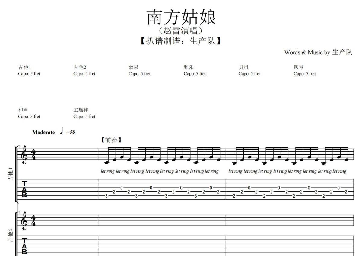 赵雷《南方姑娘》乐队总谱 - 原版编配
