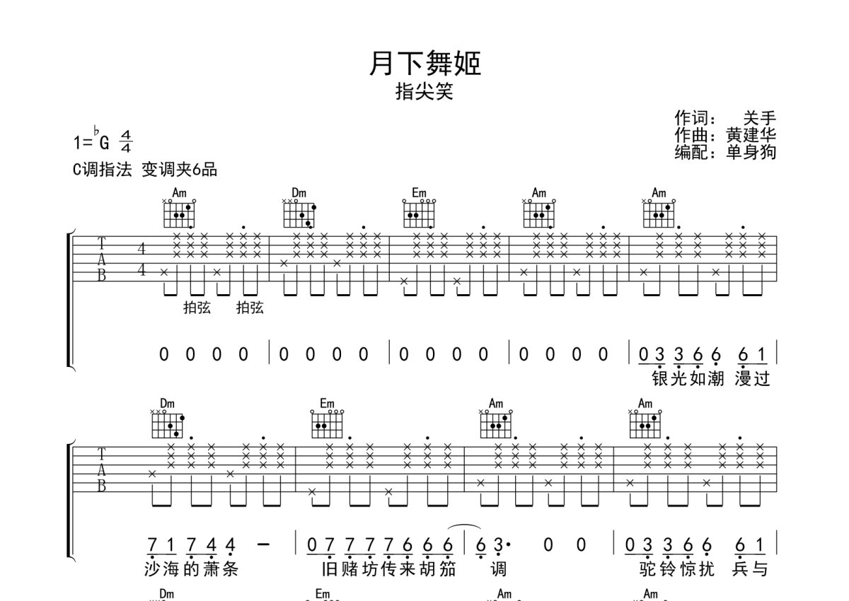 指尖笑《月下舞姬》吉他谱 - C调弹唱六线谱