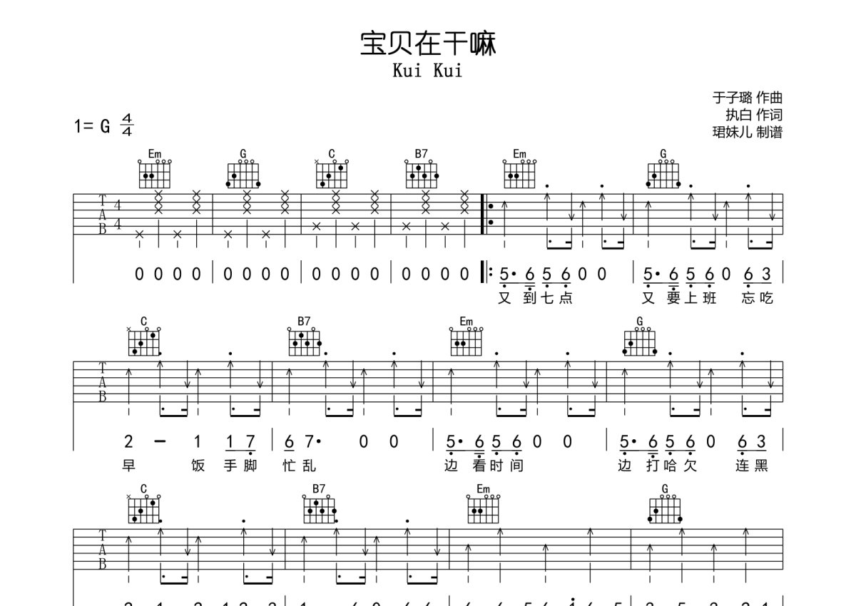 Kui Kui《宝贝在干嘛》吉他谱 - G调弹唱六线谱