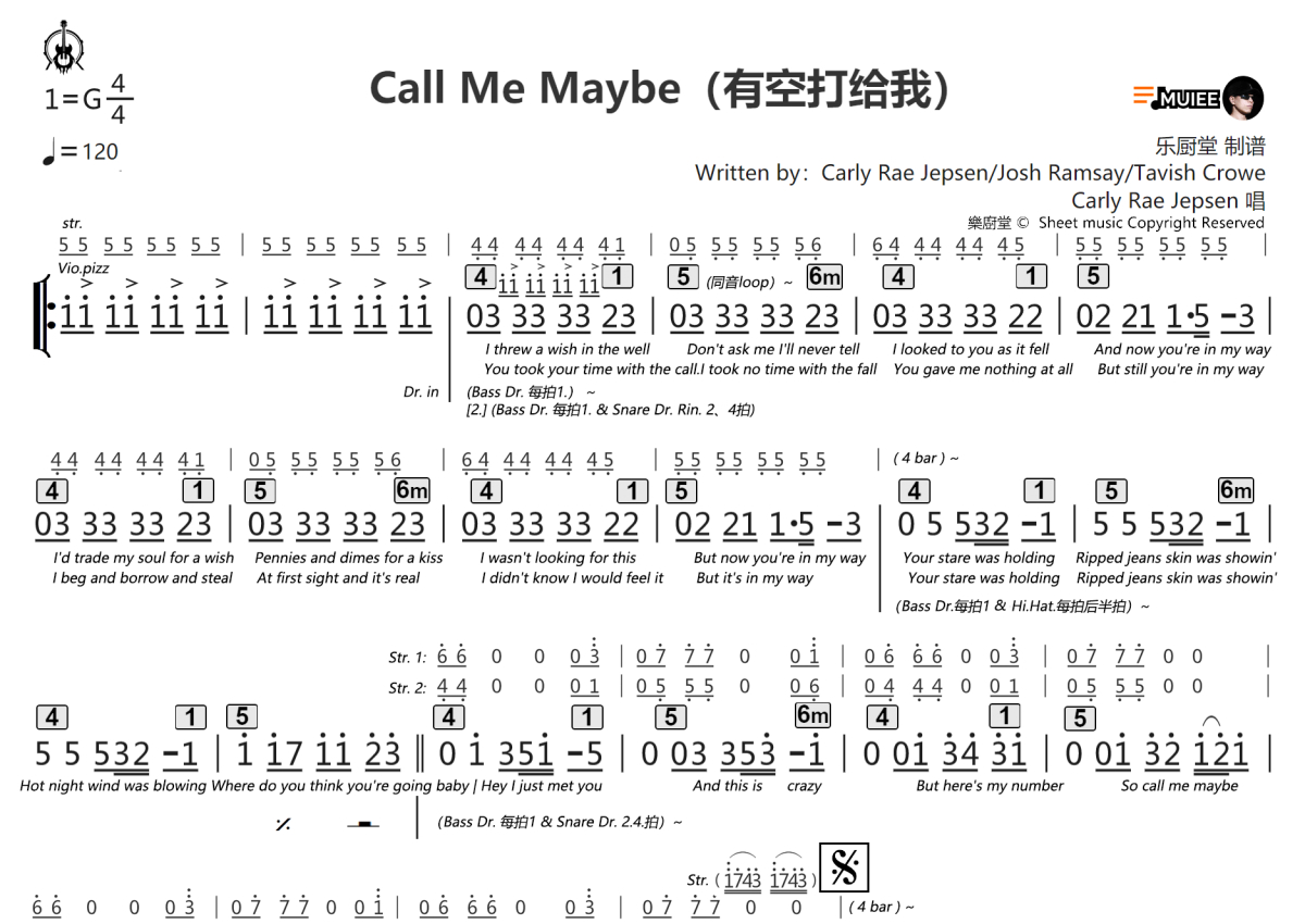 Carly Rae Jepsen《Call Me Maybe》乐队总谱