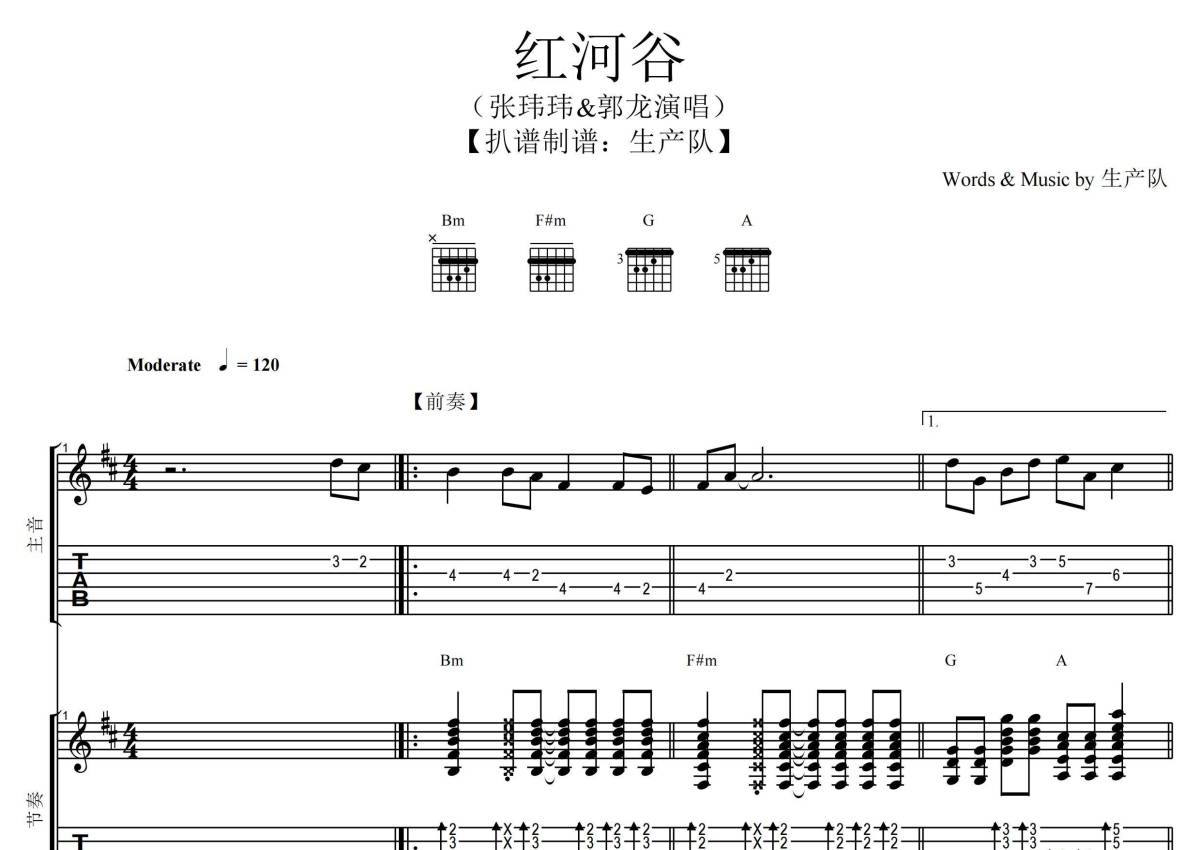 《红河谷》是张玮玮&郭龙演唱的一首歌曲,拍号为4/4拍,歌曲速度为每分钟120拍,这份乐队总谱共有一张高清图谱,图谱由 @生产队 编配上传根据原版D调指法编配,总谱包含:吉他(主音),吉他(节奏),贝斯,鼓,主旋律,和声总共5轨,完整版共15页,购买后请下载PDF,乐队总谱效果请听试听文件。