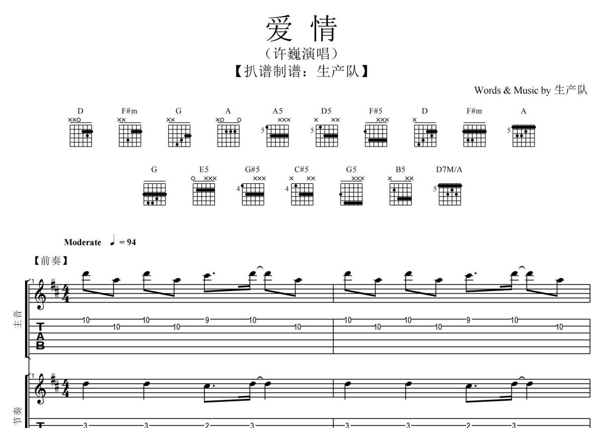 《爱情》是许巍演唱的一首歌曲,拍号为4/4拍,歌曲速度为每分钟94拍,这份乐队总谱共有一张高清图谱,图谱由 @生产队 编配上传根据原版D调指法编配,总谱包含:吉他(主音),吉他(节奏),贝斯,鼓,键盘,主旋律总共6轨,完整版共40页,购买后请下载PDF,乐队总谱效果请听试听文件。