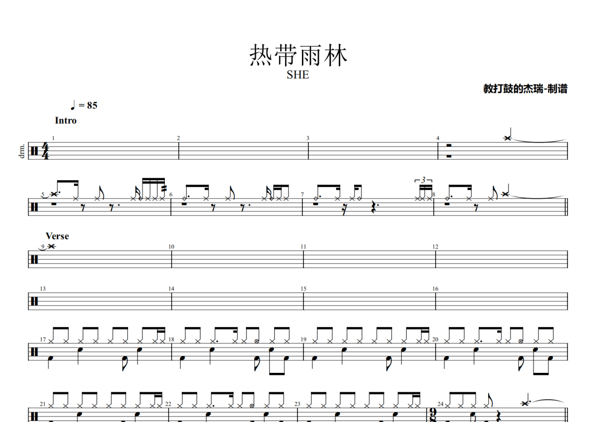 S.H.E.《热带雨林》鼓谱 - 架子鼓谱