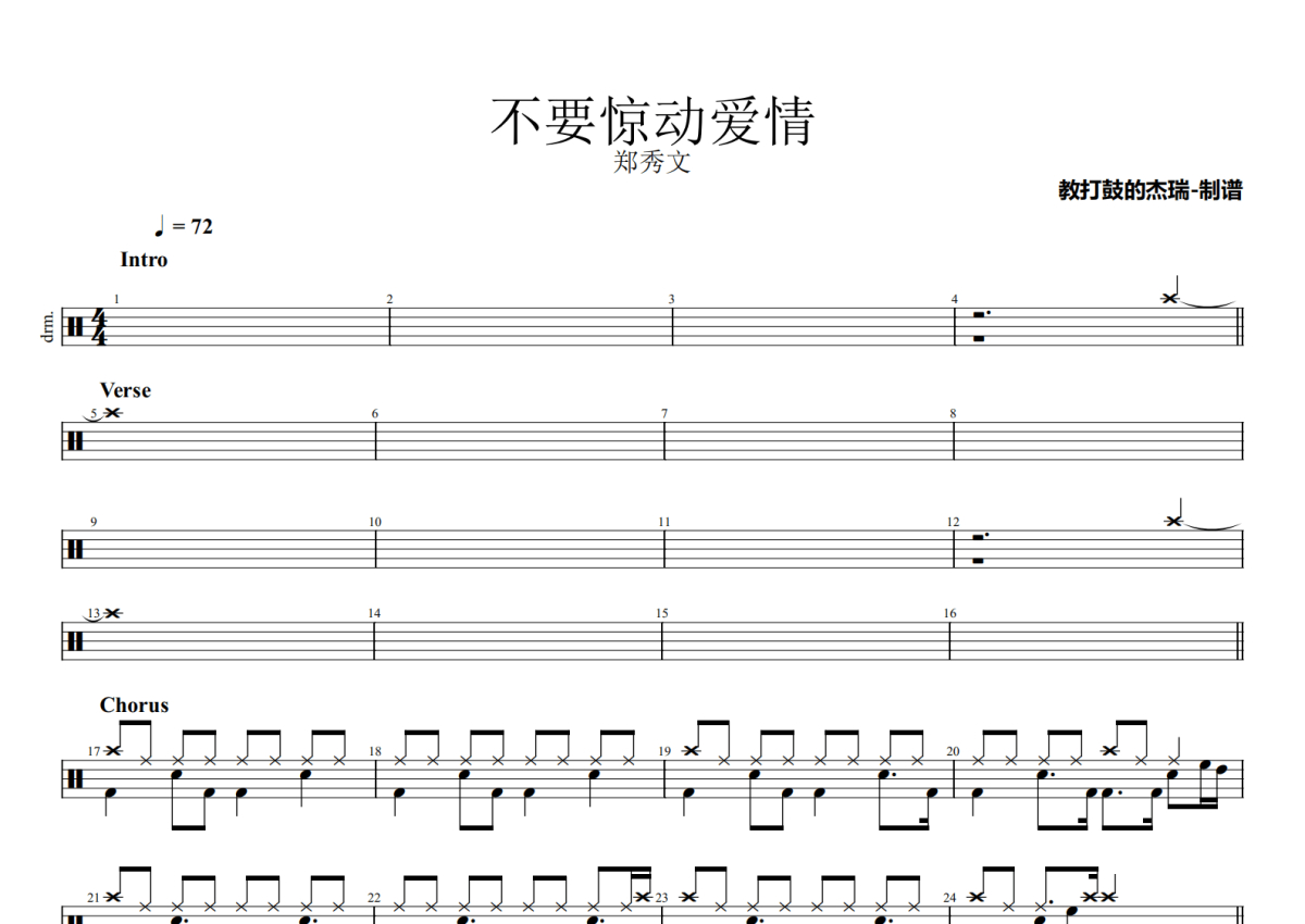 郑秀文《不要惊动爱情》鼓谱 - 架子鼓谱