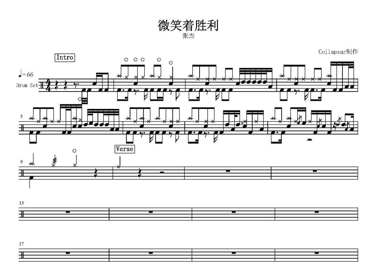 张杰《微笑着胜利》鼓谱 - 架子鼓谱