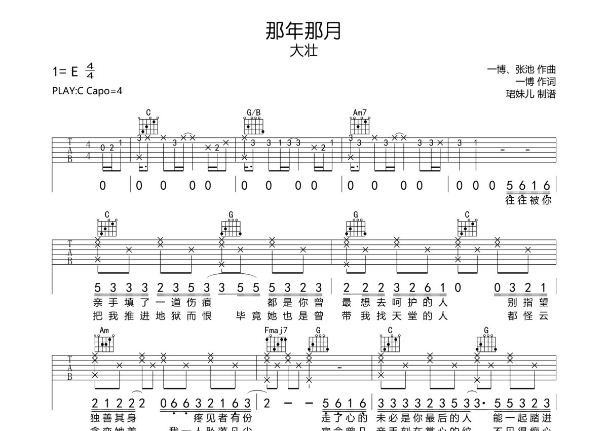 大壮《那年那月》吉他谱 - C调弹唱六线谱