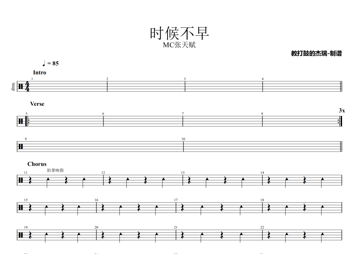 MC 张天赋《时候不早》鼓谱 - 架子鼓谱