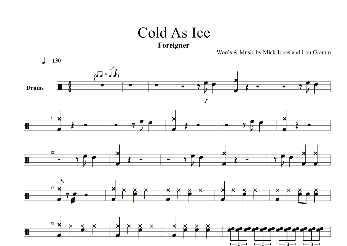 Foreigner《Cold As Ice》鼓谱 - 架子鼓谱