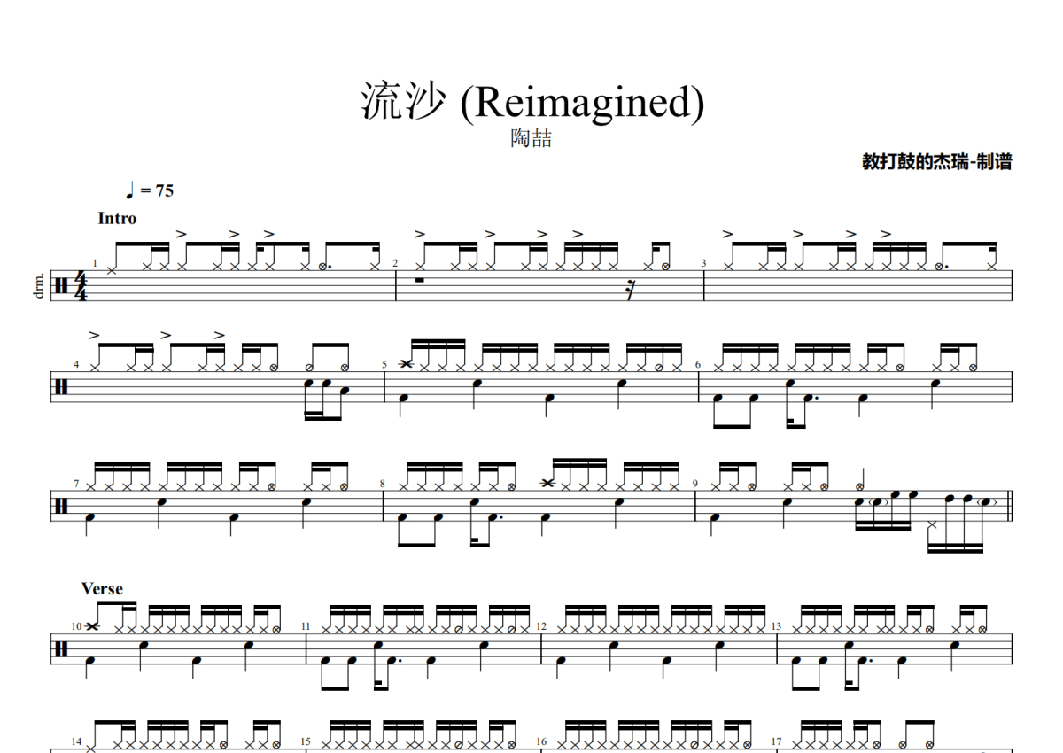 陶喆《流沙》鼓谱 - 架子鼓谱 - (Reimagined)